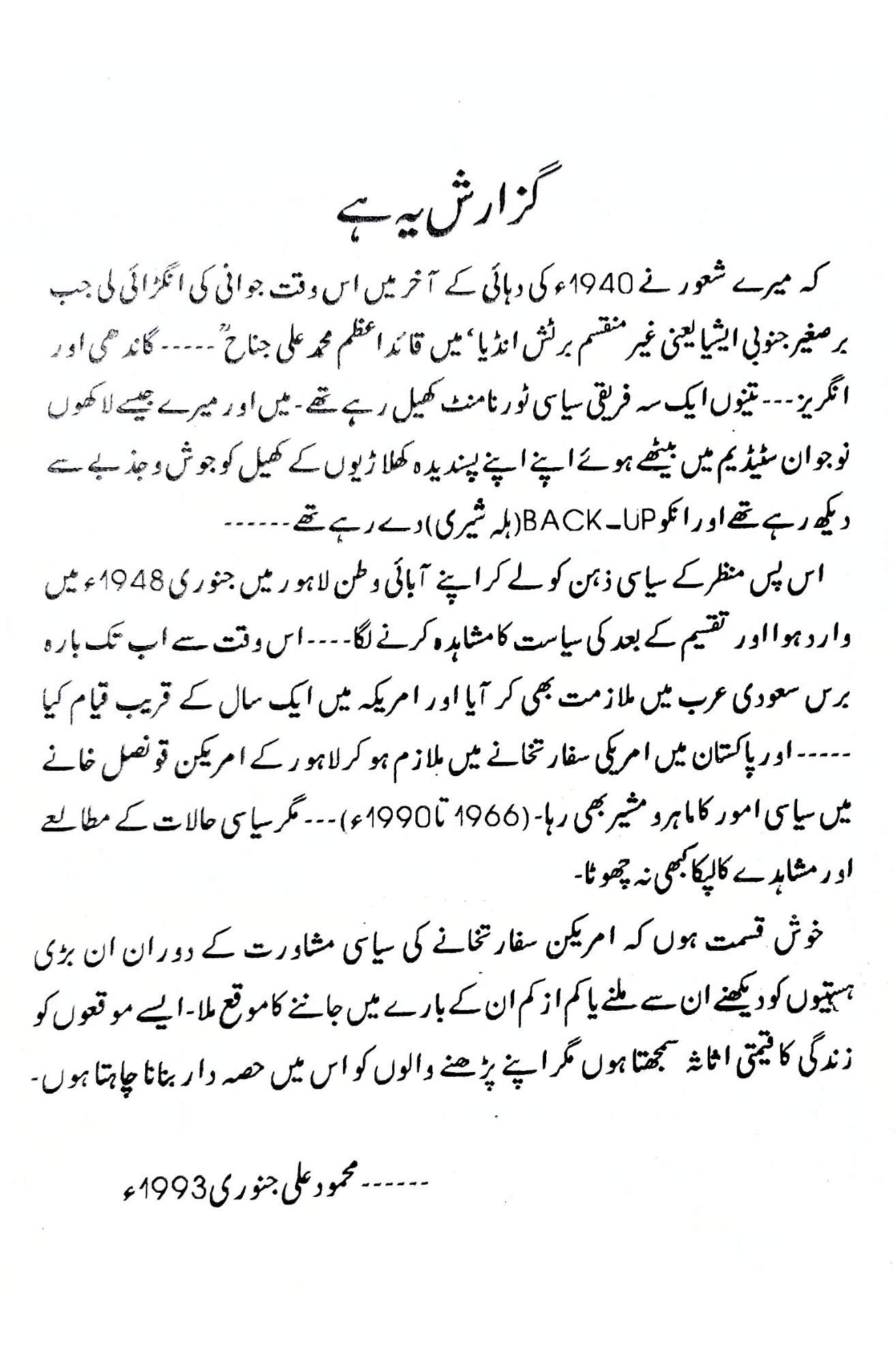 کہ میرے شعور نے 1940ء کی دہائی کے آخر میں اس وقت جوانی کی انگڑائی لی جب بر صغیر جنوبی ایشیا یعنی غیر منقسم برٹش انڈیا میں قائد اعظم محمد علی جناح ۔۔۔۔۔ گاندھی اور انگریز --- تینوں ایک سہ فریقی سیاسی ٹورنامنٹ کھیل رہے تھے۔ میں اور میرے جیسے لاکھوں نوجوان سٹیڈیم میں بیٹھے ہوئے اپنے اپنے پسندیدہ کھلاڑیوں کے کھیل کو جوش و جذبے سے دیکھ رہے تھے اور انکو BACK-UP (بلہ شیری) دے رہے تھے۔