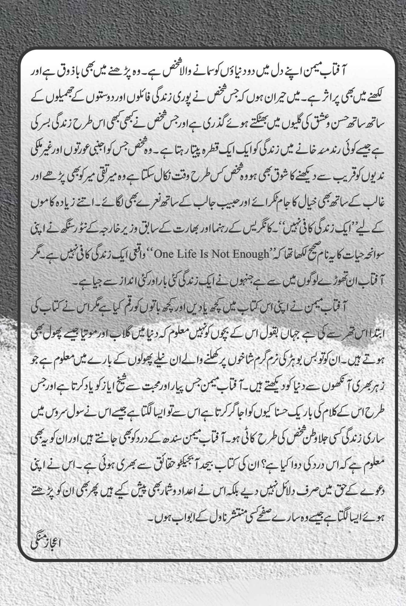 " یہ کتاب میری پانچویں کاوش ہے ۔ اس سے پہلے تین سندھی اور ایک اردو کتاب لکھنے کا جرم مجھ سے سرزد ہوا ہے۔ یہ کتاب مختلف مضامین کا مجموعہ ہے جو حالات حاضرہ، حکومتی بدعنوانی، معاشرتی انحطاط پذیری اور قحط الرجال کی تکلیف دہ صورتحال کی عکاسی کرتے ہوۓ سن۲.۱۳ اور